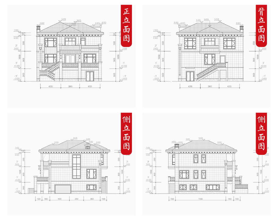 | 建筑圖: | 建筑平面圖:一層平面圖,二層平面圖,三層平面圖; 建筑立面圖:東立面圖,西立面圖,南立面圖,北立面圖,剖面圖; 大樣圖:樓梯詳圖,細部大樣,門窗大樣 |