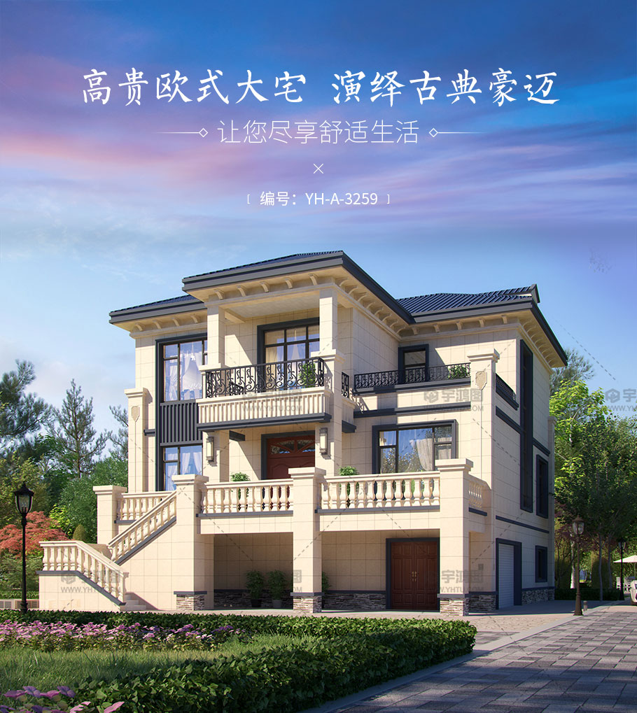 | 風格:歐式 | 層數:三層 | 結構形式:框架結構 | 圖紙編號:YH-A-3259 |