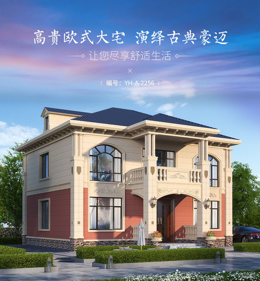 | 風格:歐式 | 層數:二層 | 結構形式:磚混結構 | 圖紙編號:YH-A-2256 |