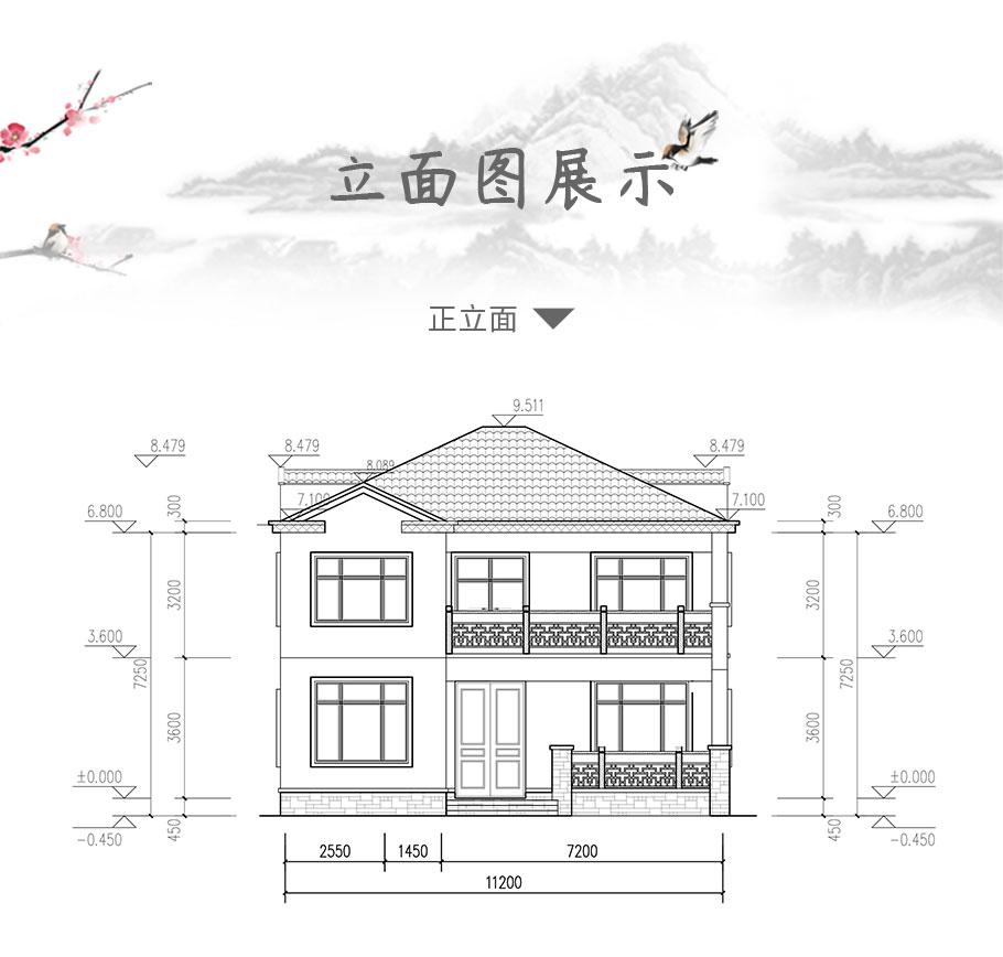 | 開間:11.2米 | 進深:10.1米 | 占地面積:113.5平方米 | 建筑面積:227平方米 |