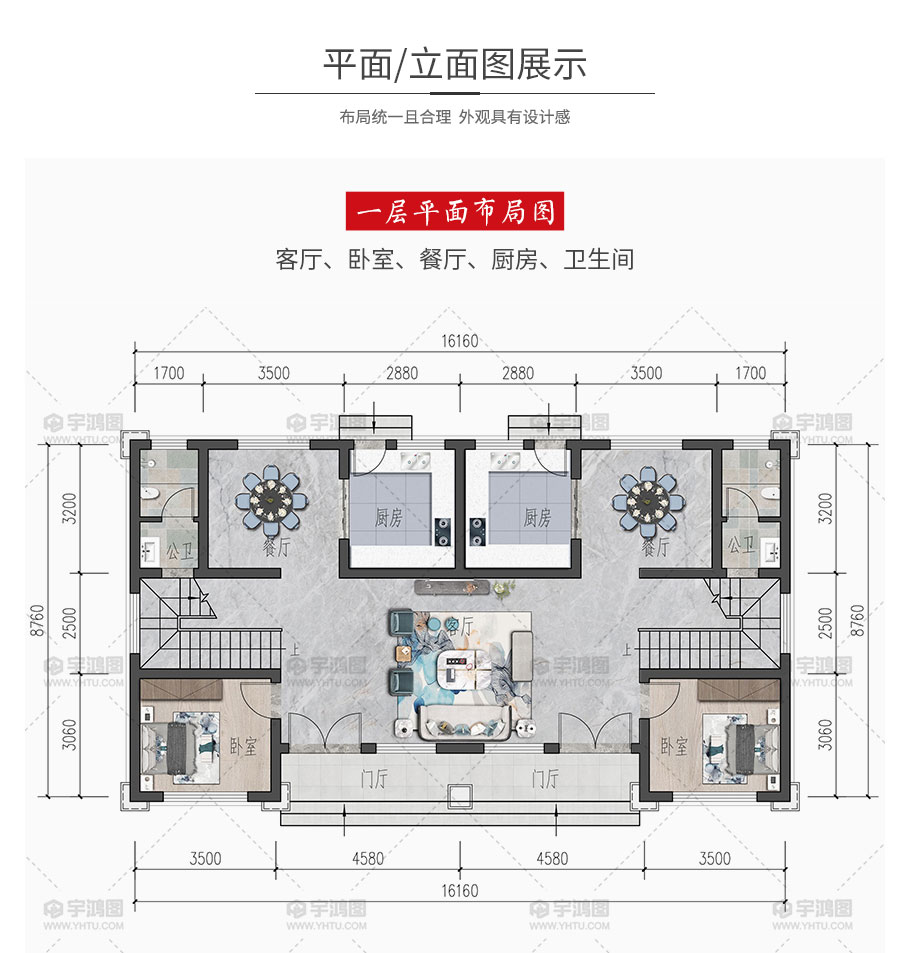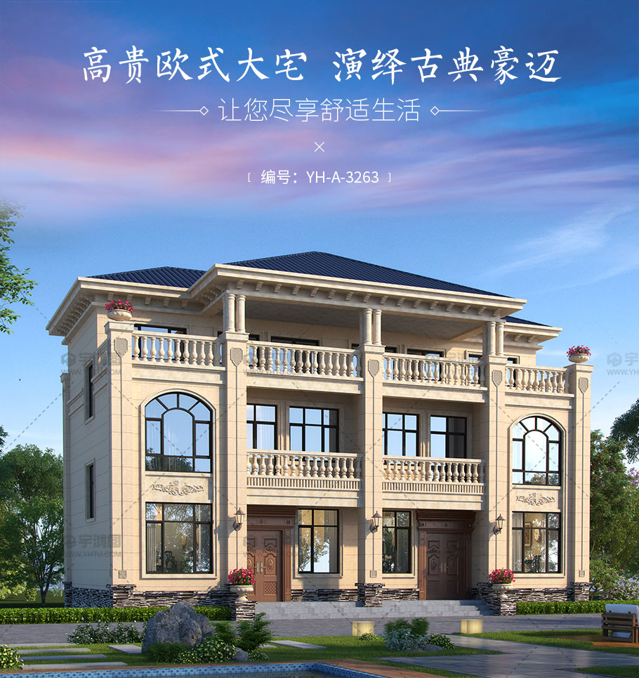 | 風格:雙拼 | 層數:三層 | 結構形式:磚混結構 | 圖紙編號:YH-A-3263 |