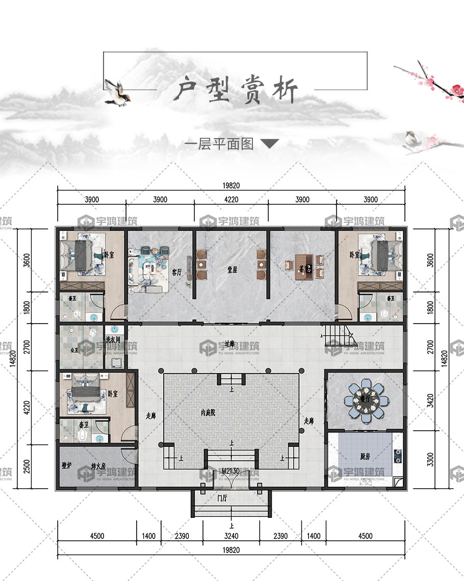| 開間:19.8米 | 進深:14.8米 | 占地面積:245平方米 | 建筑面積:455.8平方米 |