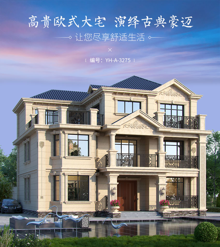 | 風格:歐式 | 層數:三層 | 結構形式:磚混結構 | 圖紙編號:YH-A-3275 |