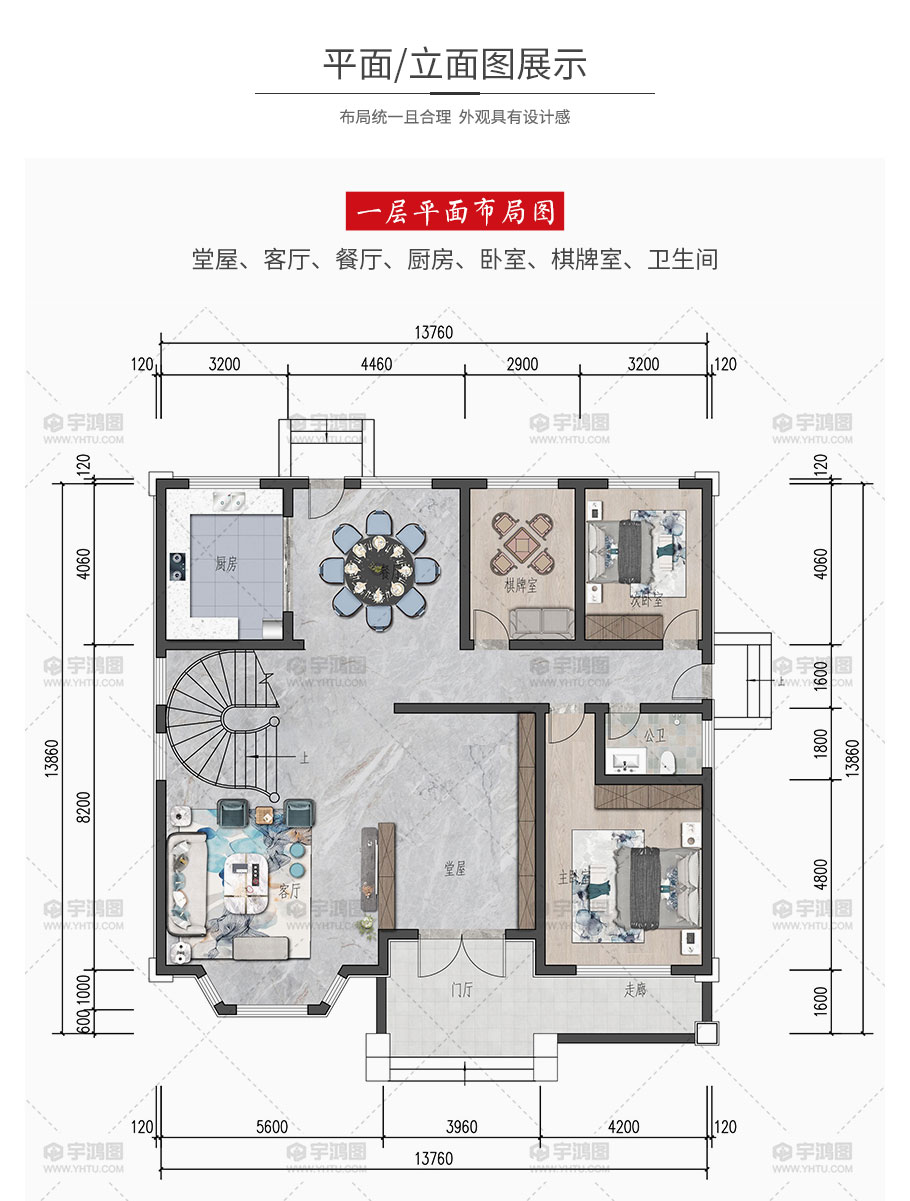 | 開間:13.7米 | 進深:13.8米 | 占地面積:183平方米 | 建筑面積:468平方米 |