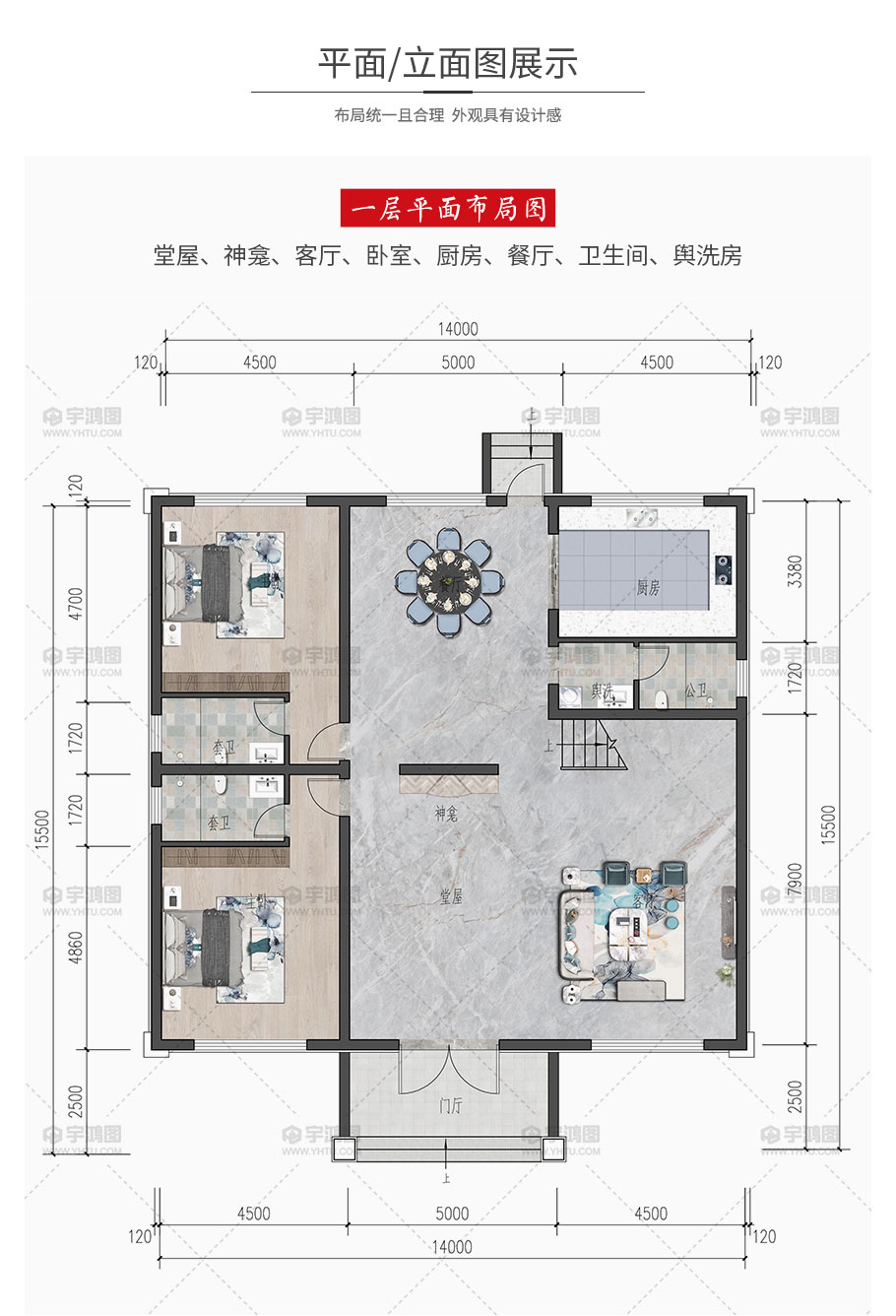 | 開間:14米 | 進深:15.5米 | 占地面積:194平方米 | 建筑面積:389平方米 |