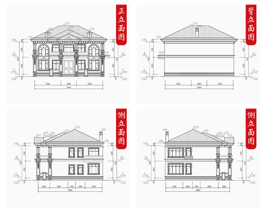 | 建筑圖: | 建筑平面圖:一層平面圖,二層平面圖; 建筑立面圖:東立面圖,西立面圖,南立面圖,北立面圖,剖面圖; 大樣圖:樓梯詳圖,細部大樣,門窗大樣 |