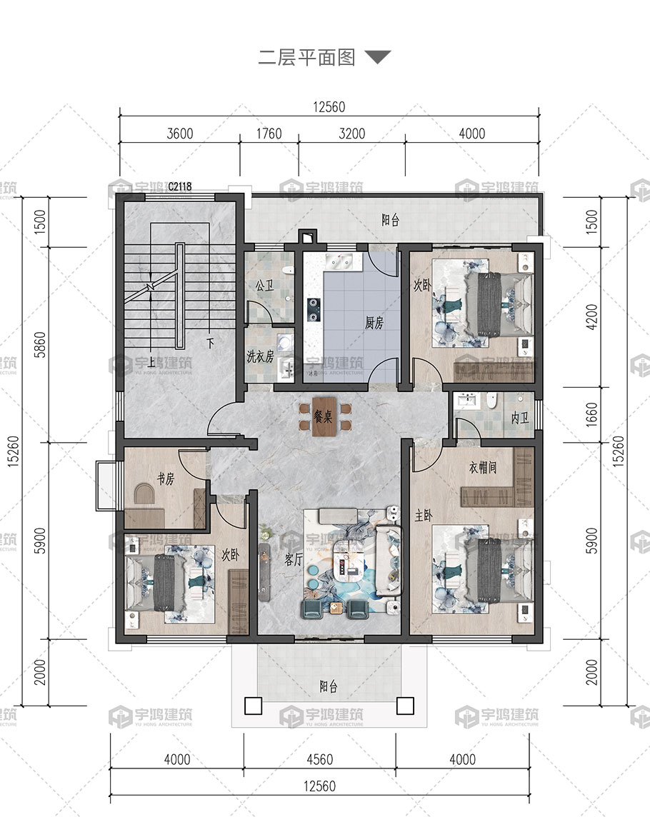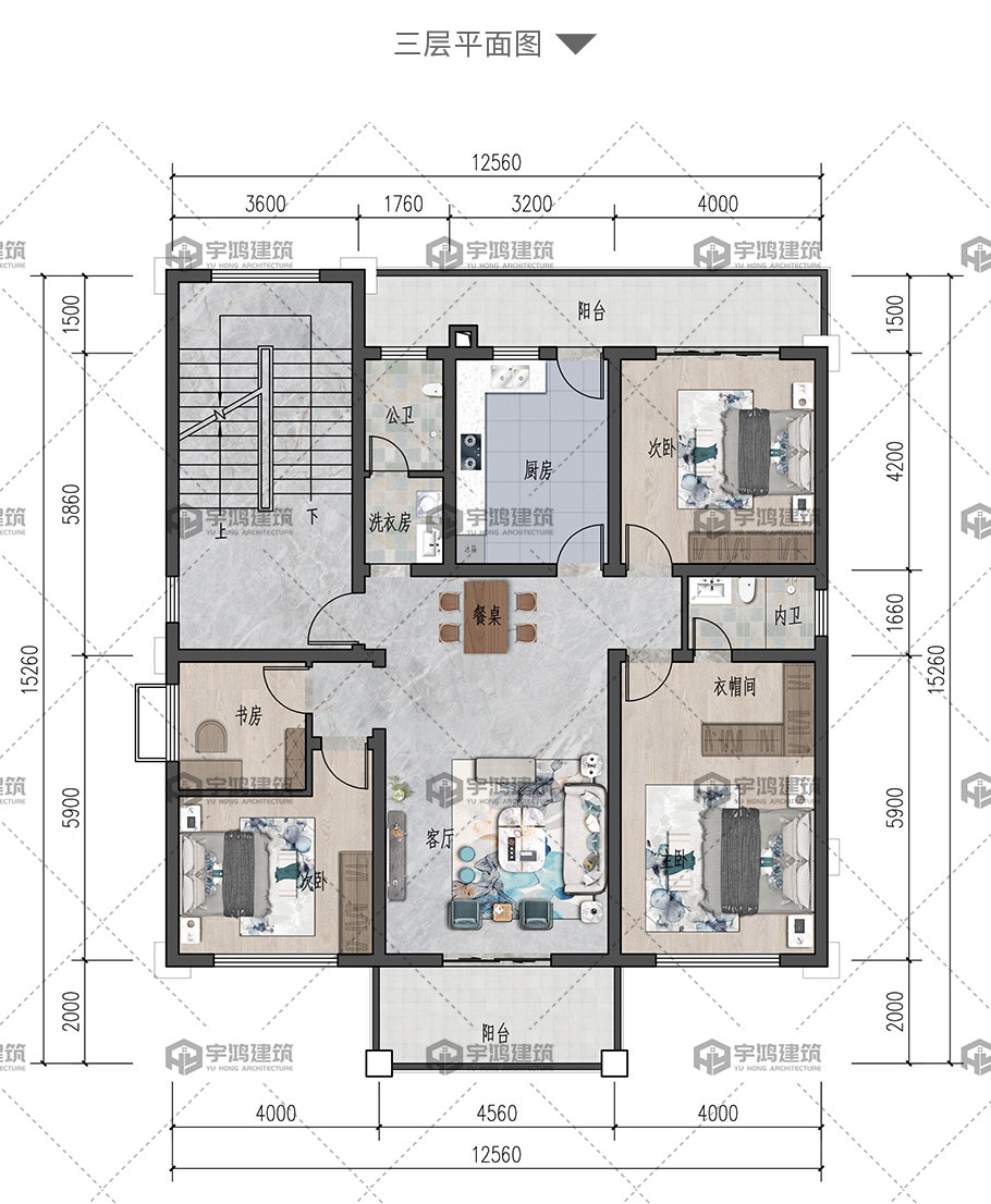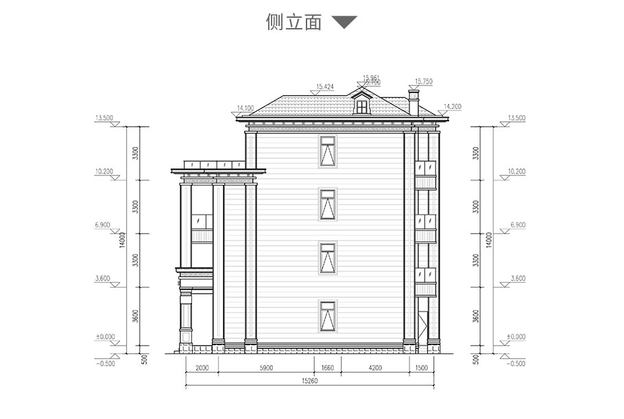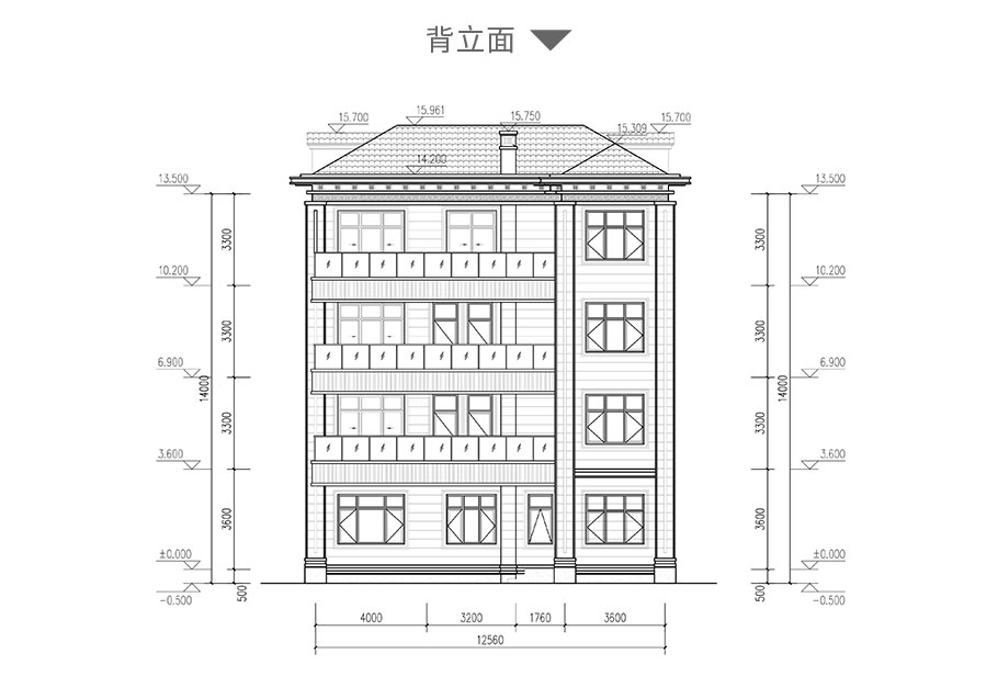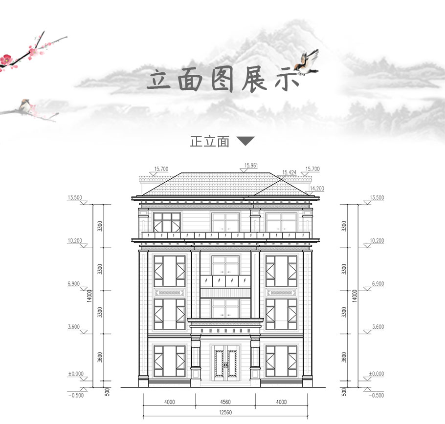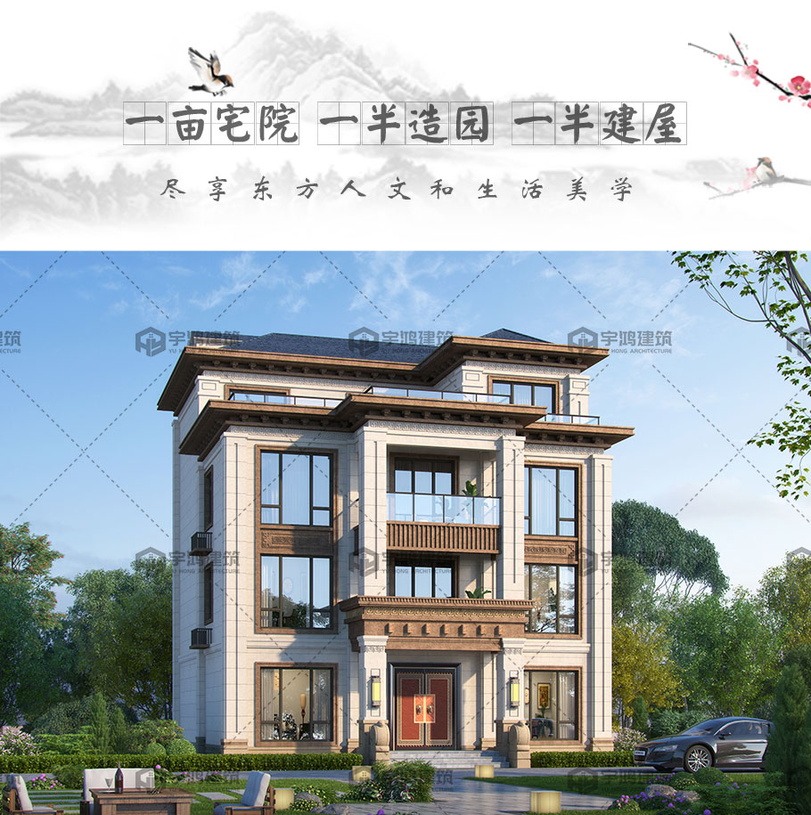 | 風格:新中式 | 層數:四層 | 結構形式:框架結構 | 圖紙編號:YH-A-4045 |