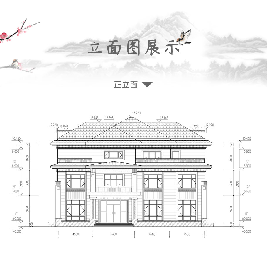 建筑平面圖:一層平面圖,二層平面圖,三層平面圖; 建筑立面圖:東立面圖,西立面圖,南立面圖,北立面圖,剖面圖; 大樣圖:樓梯詳圖,細部大樣,門窗大樣 |