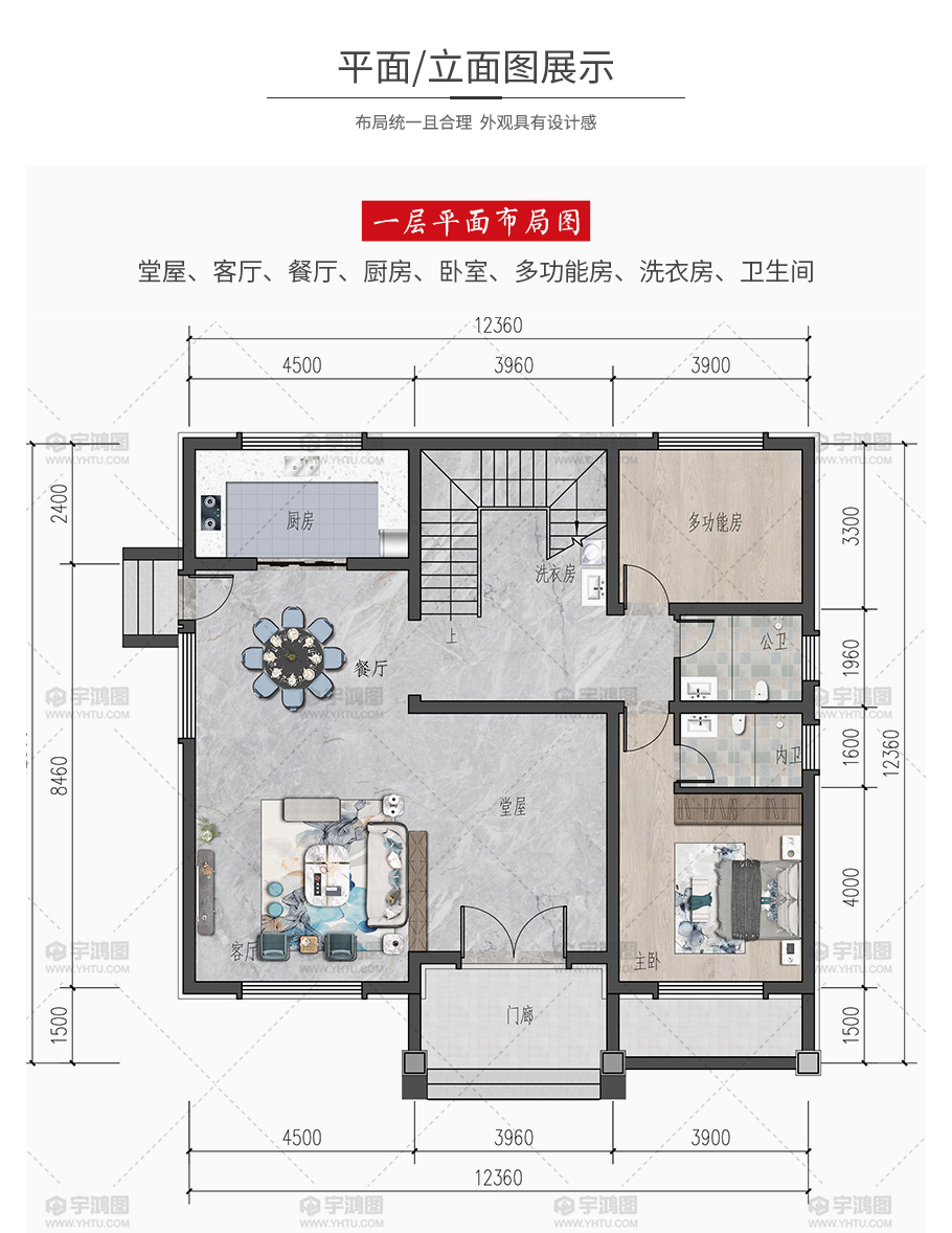 | 開間:12.3米 | 進深:12.3米 | 占地面積:145平方米 | 建筑面積:278平方米 |