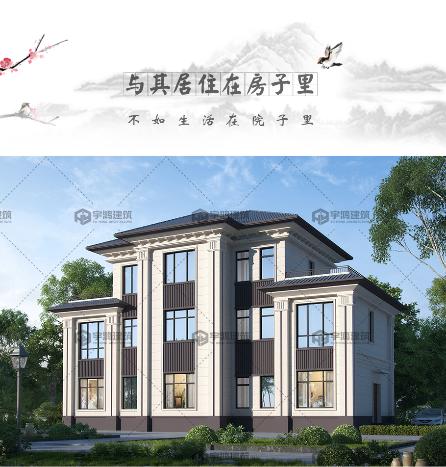 三層新中式大氣別墅造型占地188平自建別墅設計