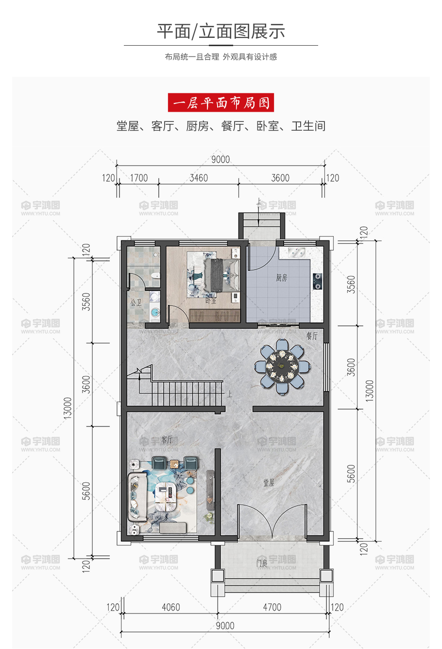 樓層給排水平面圖:一層給排水平面圖,二層給排水平面圖,三層給排水平面圖; 屋頂給排水平面圖; 衛生間排水系統圖 |