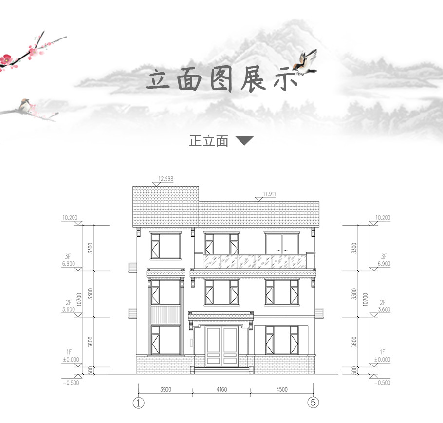 成品圖紙>三層新中式磚混別墅占地131平別墅設(shè)計(jì)圖
