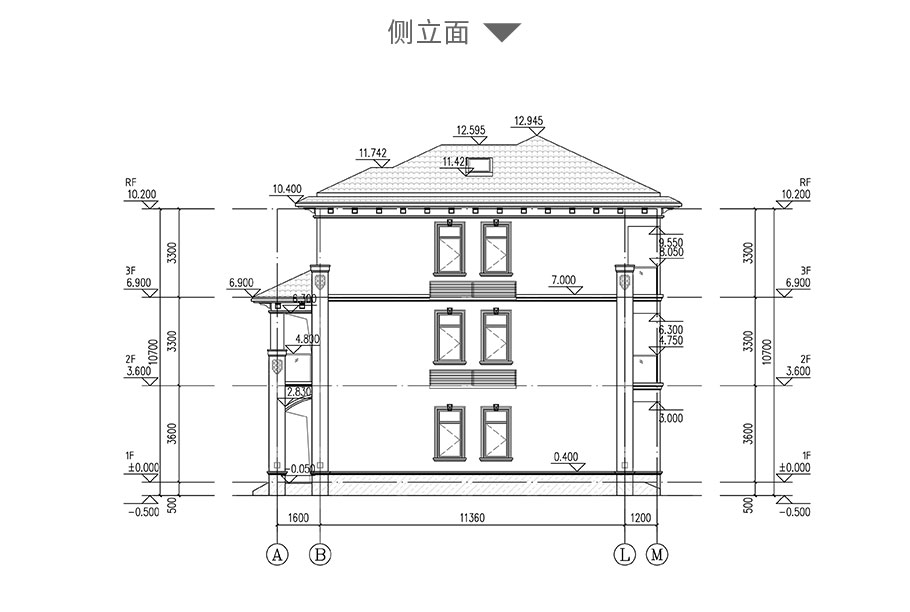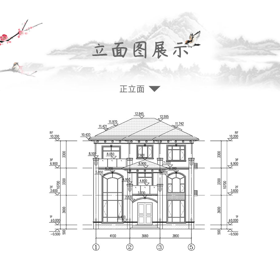 建筑平面圖:一層平面圖,二層平面圖,三層平面圖; 建筑立面圖:東立面圖,西立面圖,南立面圖,北立面圖,剖面圖; 大樣圖:樓梯詳圖,細部大樣,門窗大樣 |