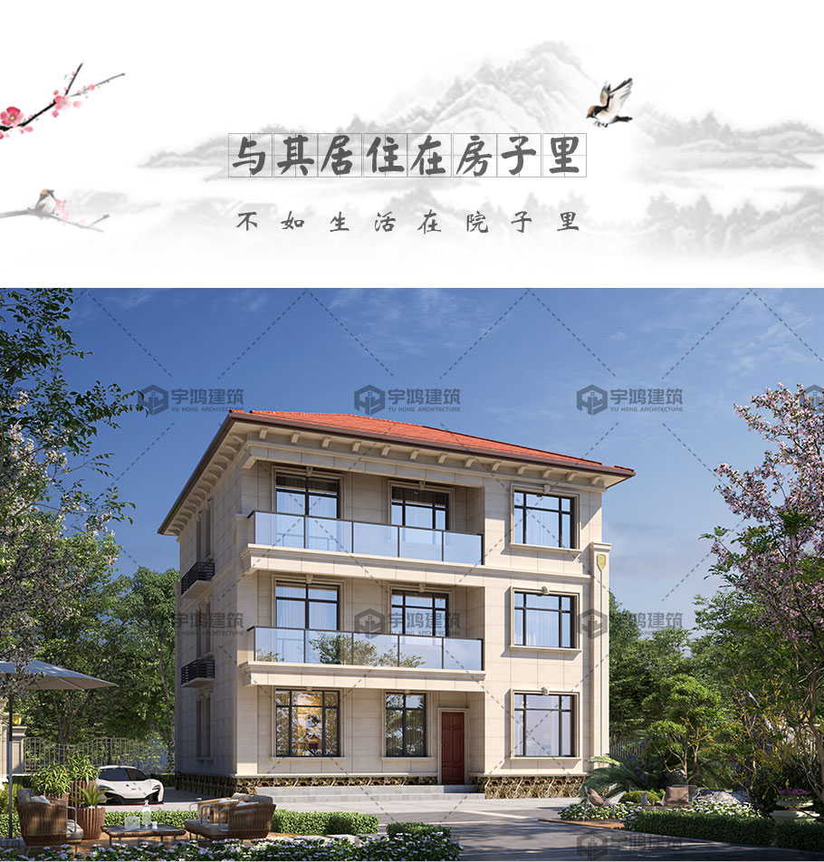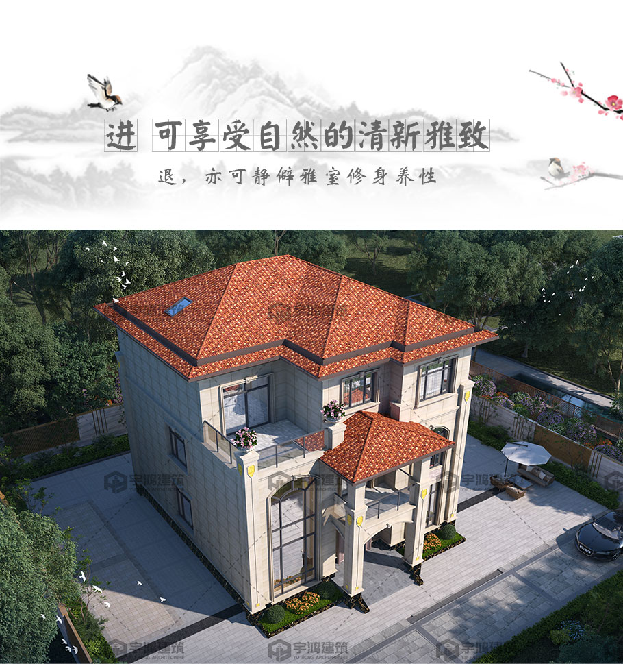 框架結構新中式別墅設計占地150平三層設計圖紙