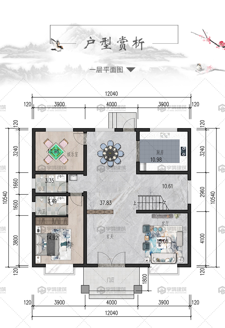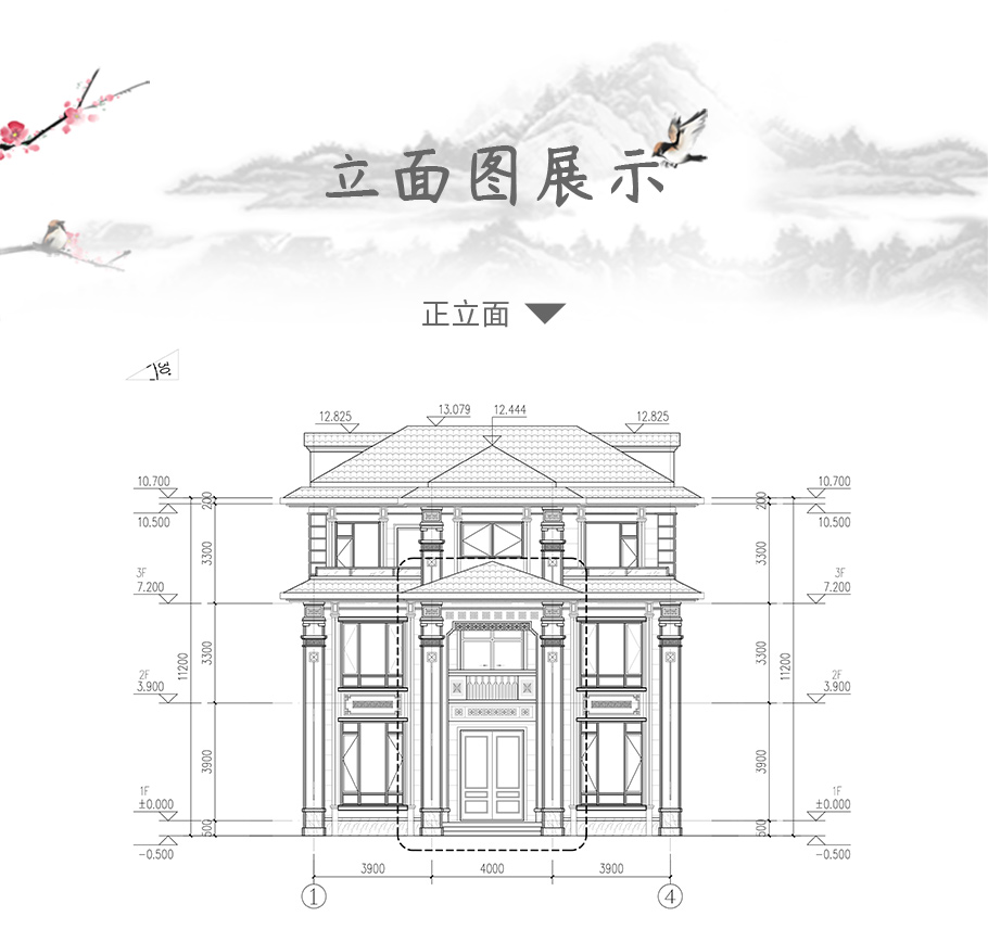 成品圖紙>三層框架新中式占地135平自建別墅設(shè)計圖