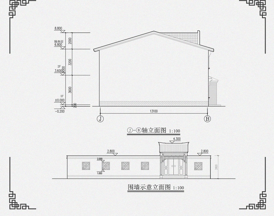 | 建筑圖: | 建筑平面圖:一層平面圖,二層平面圖; 建筑立面圖:東立面圖,西立面圖,南立面圖,北立面圖,剖面圖; 大樣圖:樓梯詳圖,細部大樣,門窗大樣 |