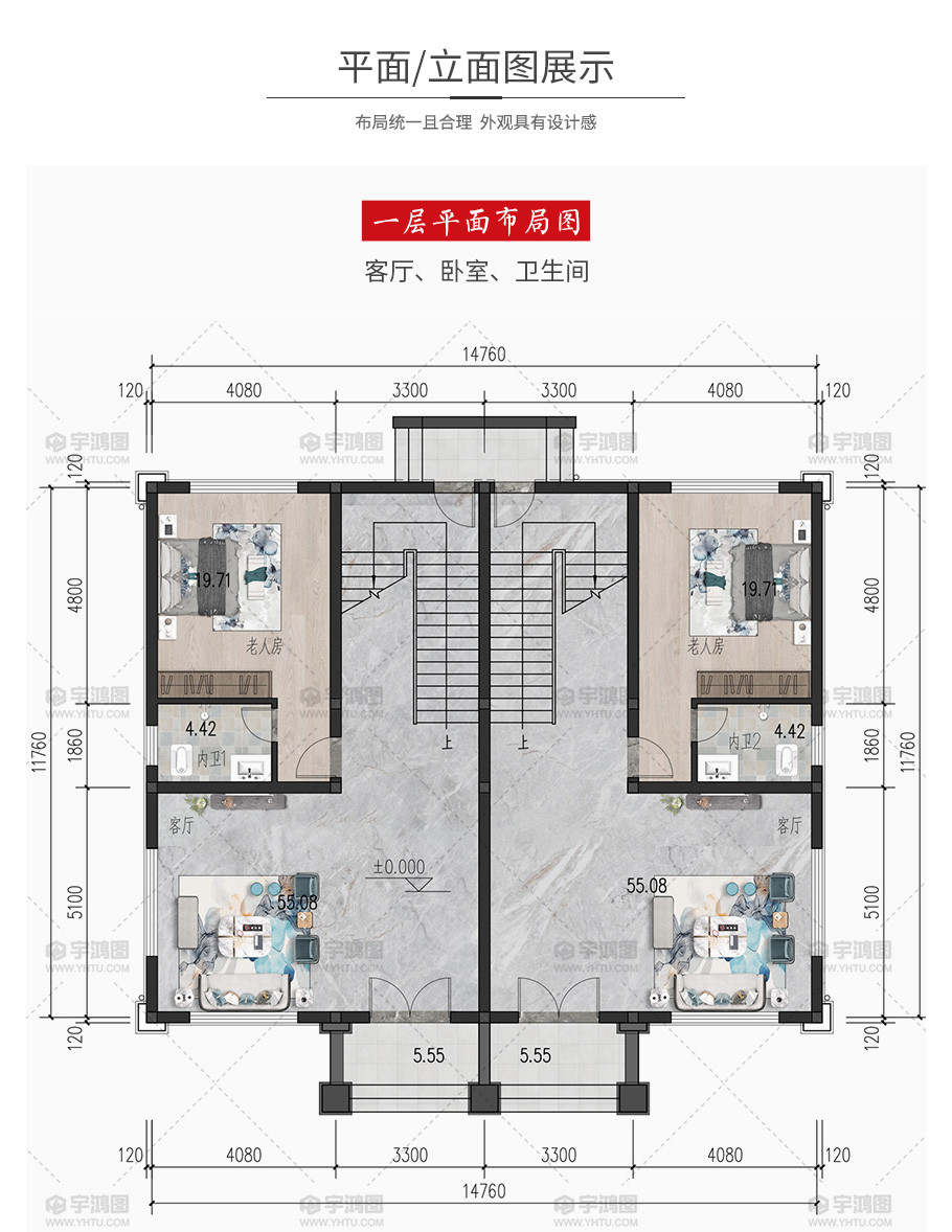 | 開間:14.7米 | 進深:11.7米 | 占地面積:189.4平方米 | 建筑面積:372平方米 |