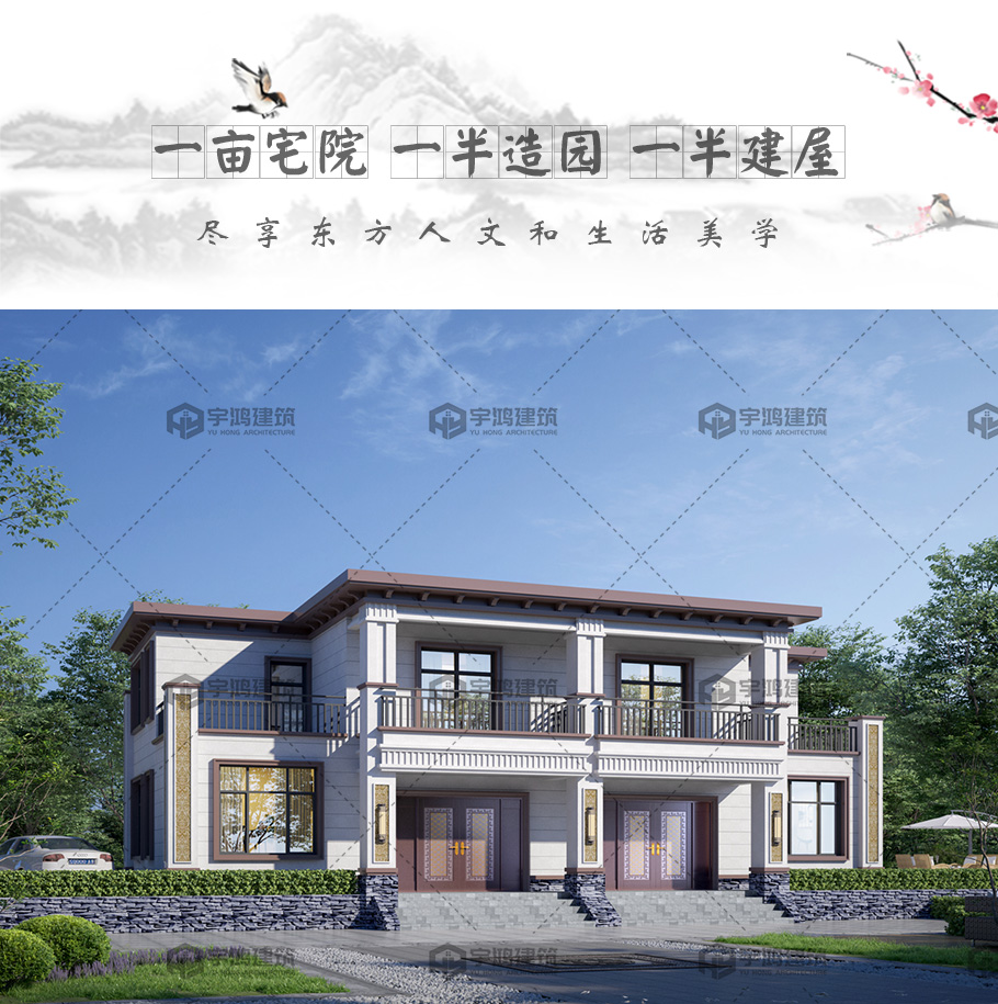 簡單實用兩層新中式占地158平自建別墅圖紙