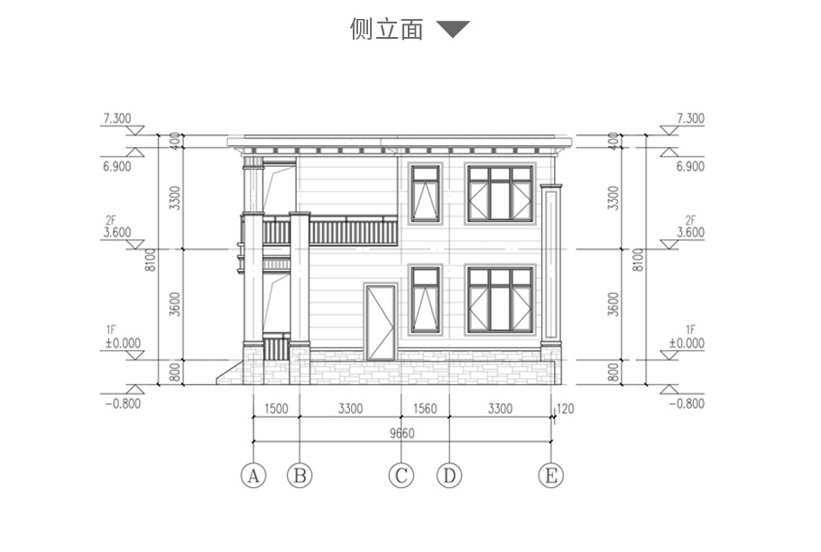 建筑平面圖:一層平面圖,二層平面圖; 建筑立面圖:東立面圖,西立面圖,南立面圖,北立面圖,剖面圖; 大樣圖:樓梯詳圖,細部大樣,門窗大樣 |