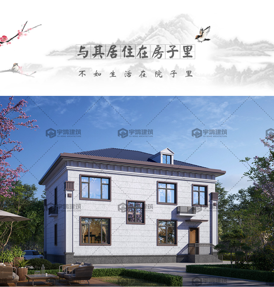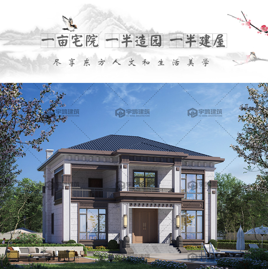兩層新中式磚混結構別墅占地161平自建別墅設計圖