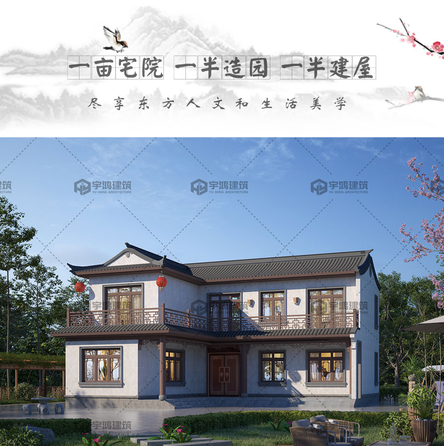 成品圖紙>兩層框架結(jié)構(gòu)中式別墅占地144平自建別墅設計圖