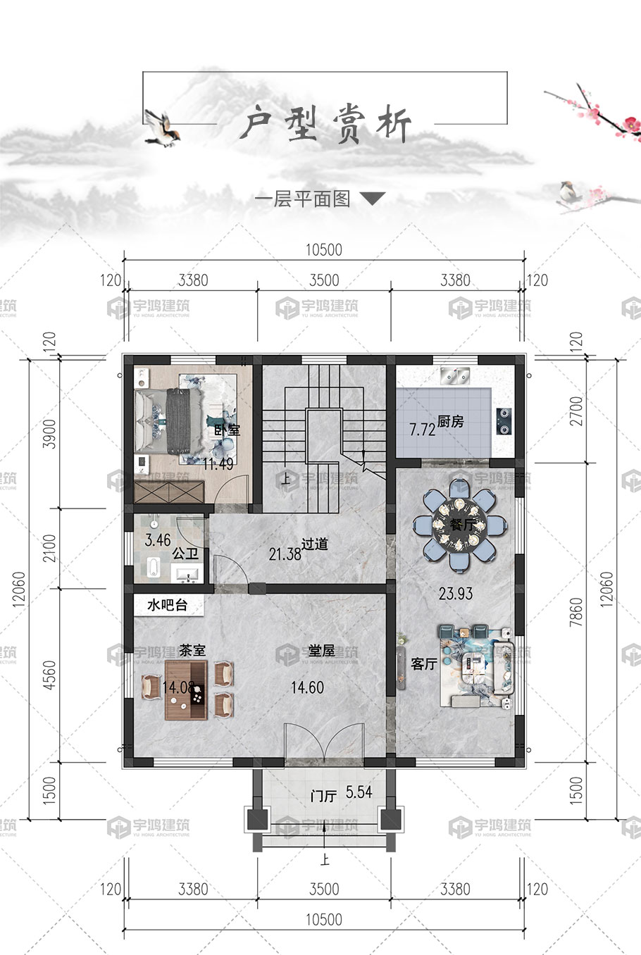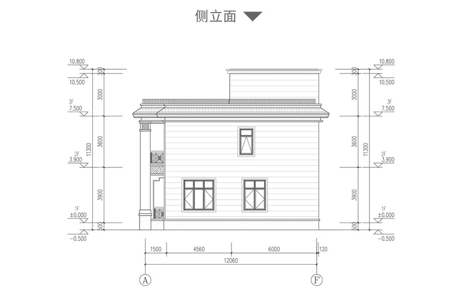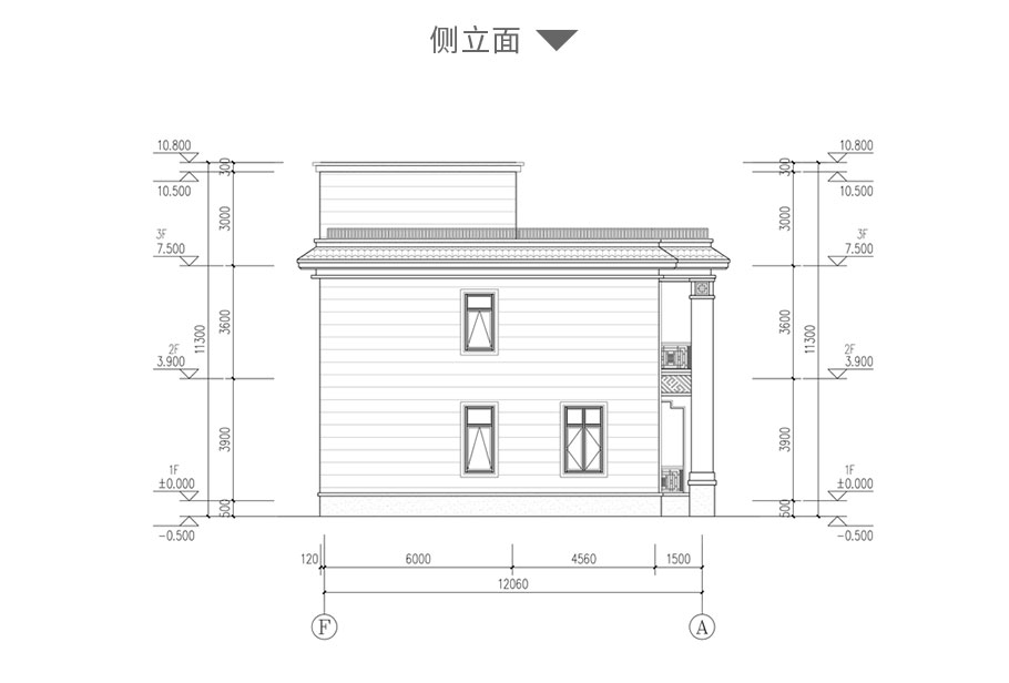 | 開間:10.5米 | 進深:12.06米 | 占地面積:118.54平方米 | 建筑面積:255平方米 |