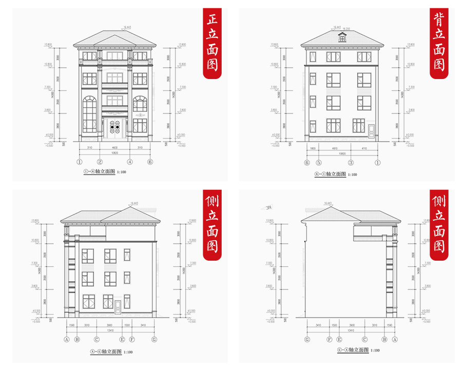 建筑平面圖:一層平面圖,二層平面圖,三層平面圖,四層平面圖; 建筑立面圖:東立面圖,西立面圖,南立面圖,北立面圖,剖面圖; 大樣圖:樓梯詳圖,細(xì)部大樣,門窗大樣 |