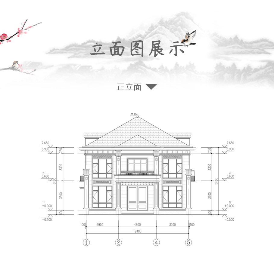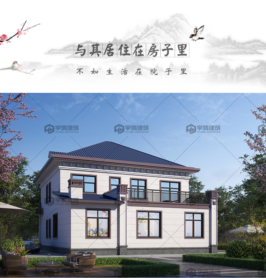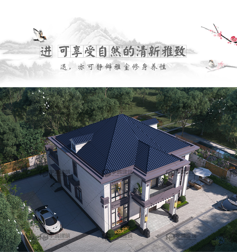 | 風格:新中式 | 層數:二層 | 結構形式:框架結構 | 圖紙編號:YH-2-3595 |