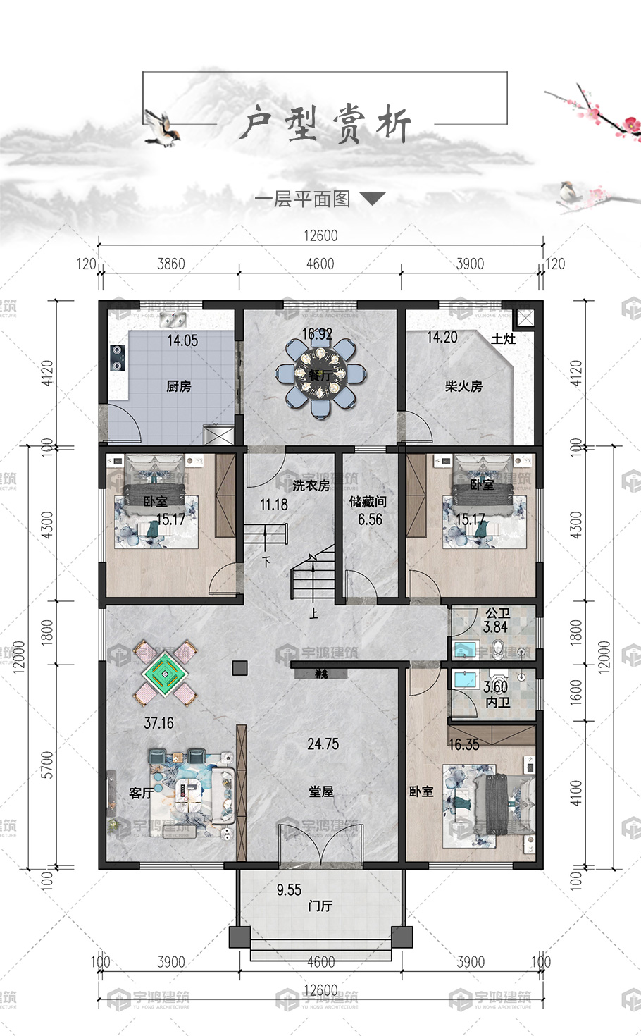 | 開間:12.6米 | 進深:12米 | 占地面積:212平方米 | 建筑面積:363平方米 |