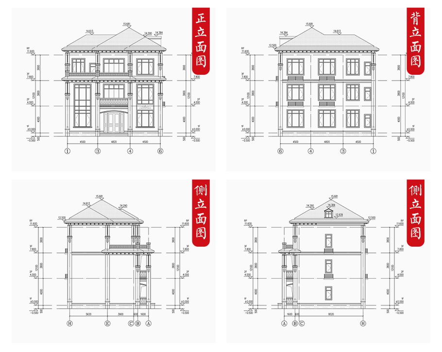 | 建筑圖: | 建筑平面圖:一層平面圖,二層平面圖,三層平面圖; 建筑立面圖:東立面圖,西立面圖,南立面圖,北立面圖,剖面圖; 大樣圖:樓梯詳圖,細部大樣,門窗大樣 |