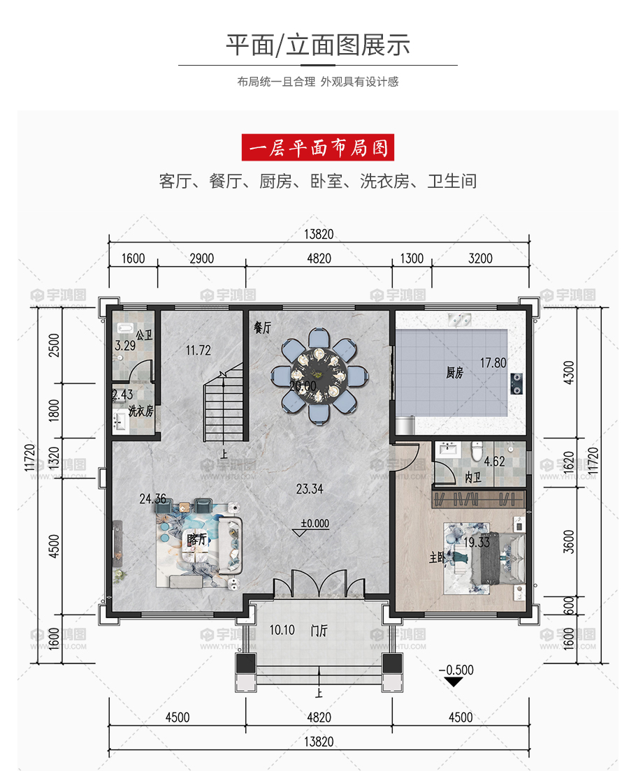 | 開間:13.82米 | 進深:11.72米 | 占地面積:152平方米 | 建筑面積:396平方米 |