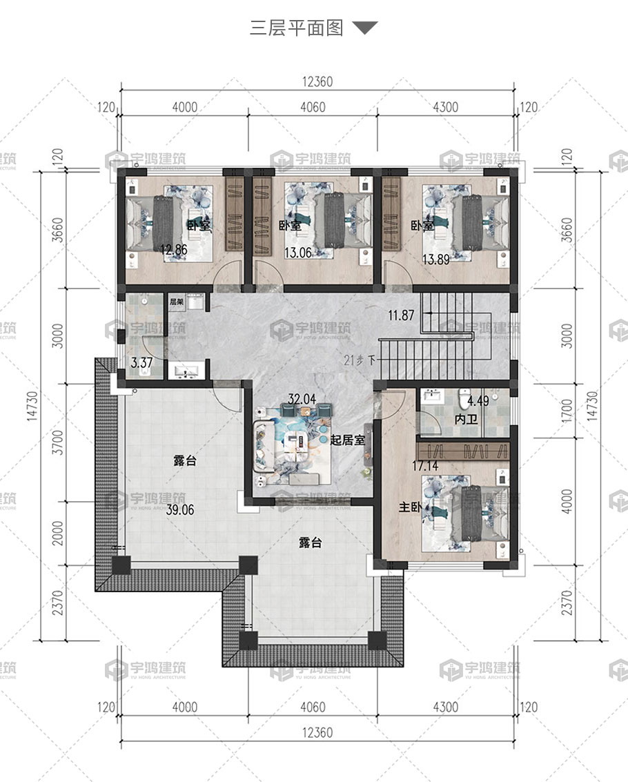 建筑平面圖:一層平面圖,二層平面圖,三層平面圖; 建筑立面圖:東立面圖,西立面圖,南立面圖,北立面圖,剖面圖; 大樣圖:樓梯詳圖,細部大樣,門窗大樣 |