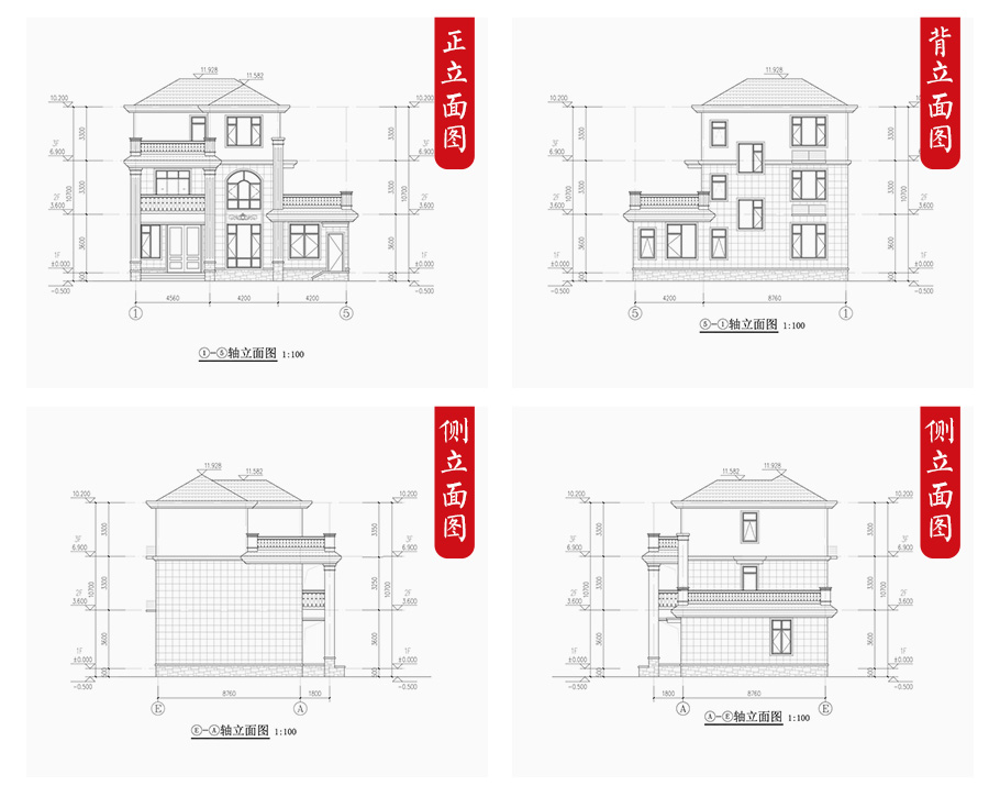 建筑平面圖:一層平面圖,二層平面圖,三層平面圖; 建筑立面圖:東立面圖,西立面圖,南立面圖,北立面圖,剖面圖; 大樣圖:樓梯詳圖,細部大樣,門窗大樣 |