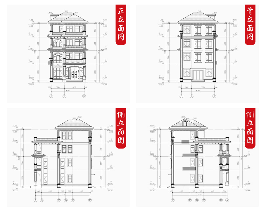 建筑平面圖:一層平面圖,二層平面圖,三層平面圖,四層平面圖; 建筑立面圖:東立面圖,西立面圖,南立面圖,北立面圖,剖面圖; 大樣圖:樓梯詳圖,細部大樣,門窗大樣 |