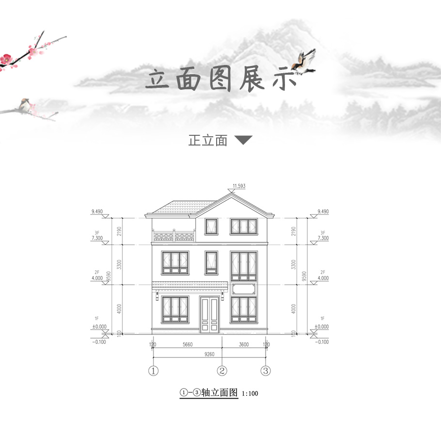 建筑平面圖:一層平面圖,二層平面圖,三層平面圖; 建筑立面圖:東立面圖,西立面圖,南立面圖,北立面圖,剖面圖; 大樣圖:樓梯詳圖,細(xì)部大樣,門窗大樣 |
