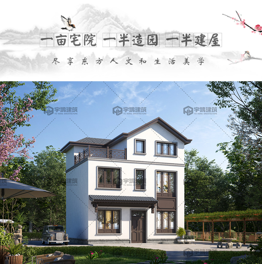 占地75平新農(nóng)村三層簡單中式小別墅設(shè)計圖紙