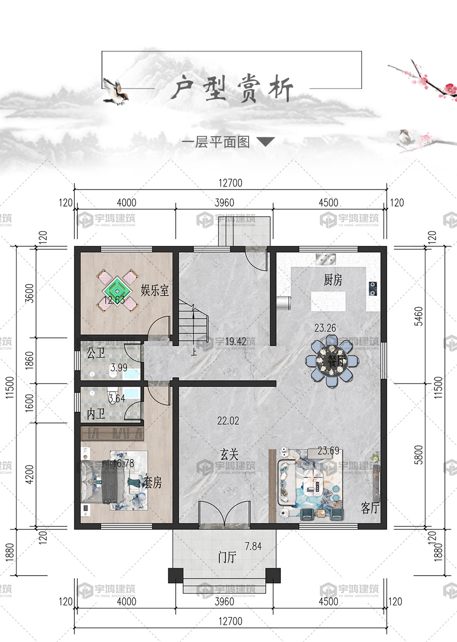 | 開(kāi)間:12.7米 | 進(jìn)深:11.5米 | 占地面積:154.41平方米 | 建筑面積:379平方米 |