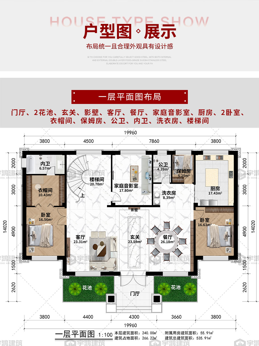 成品圖紙>占地266平造價43萬-55萬新中式別墅設計圖紙