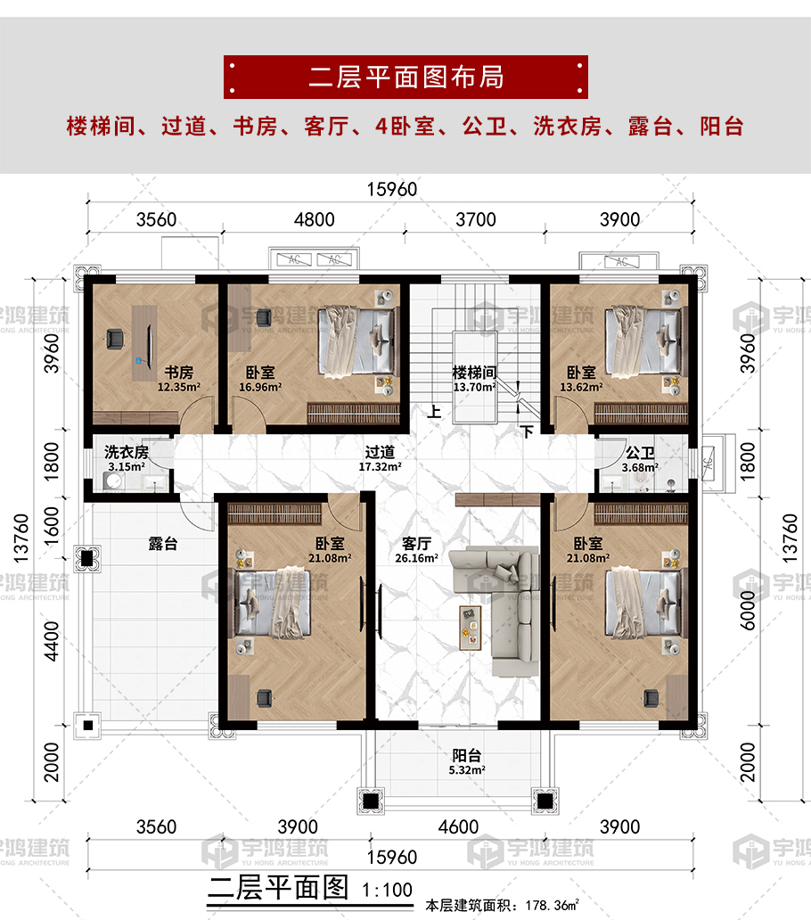 | 開間:15.96米 | 進深:13.76米 | 占地面積:205.59平方米 | 建筑面積:378.08平方米 |