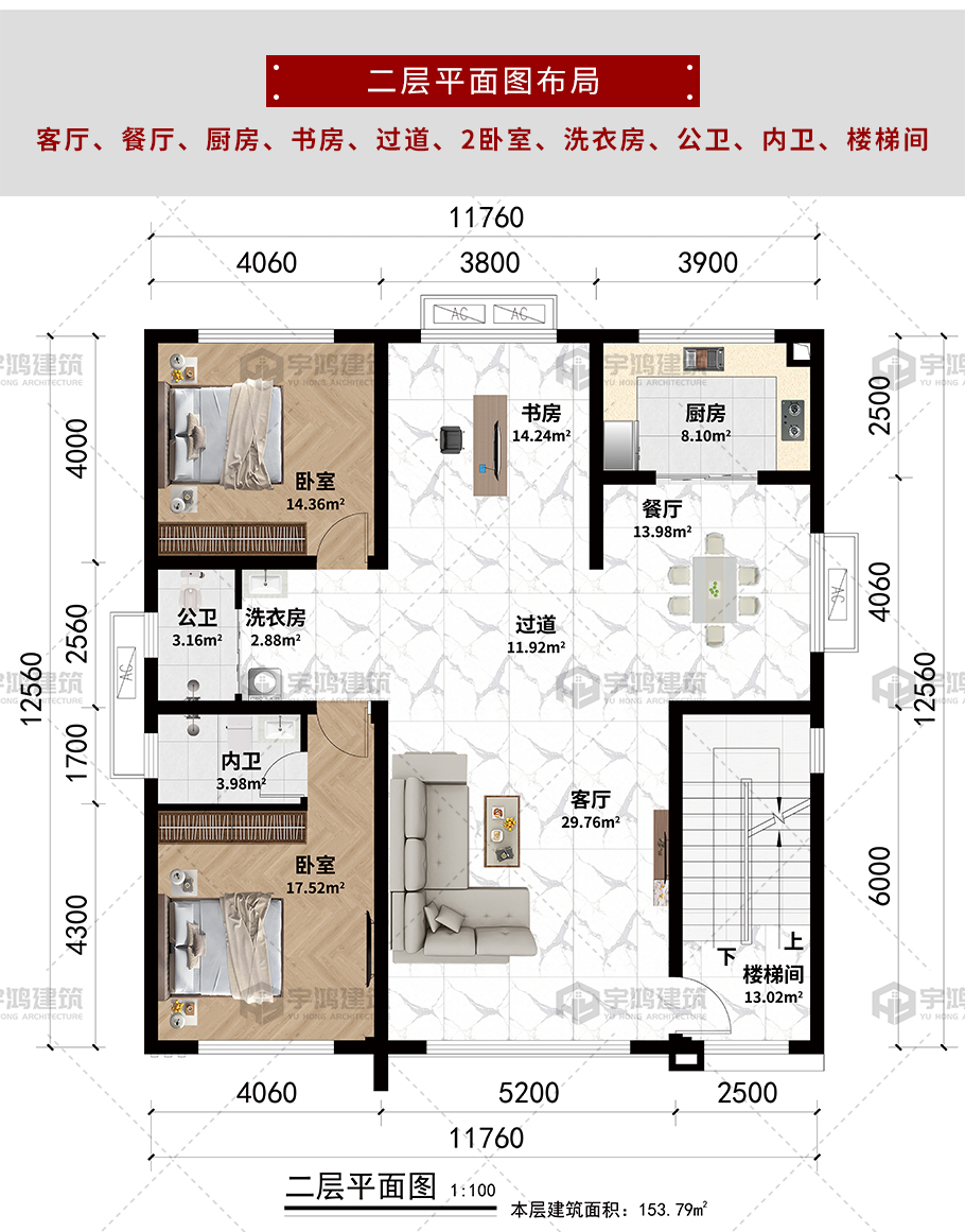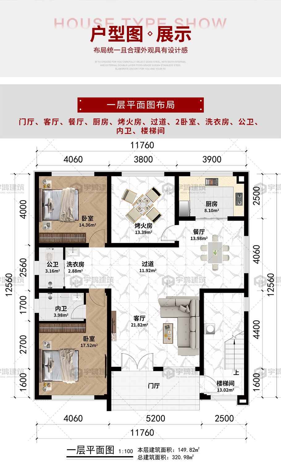 | 開(kāi)間:11.76米 | 進(jìn)深:12.56米 | 占地面積:153.79平方米 | 建筑面積:320.98平方米 |