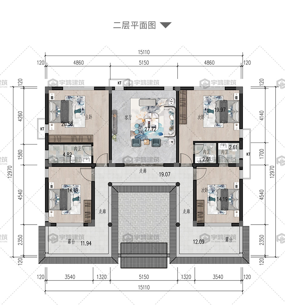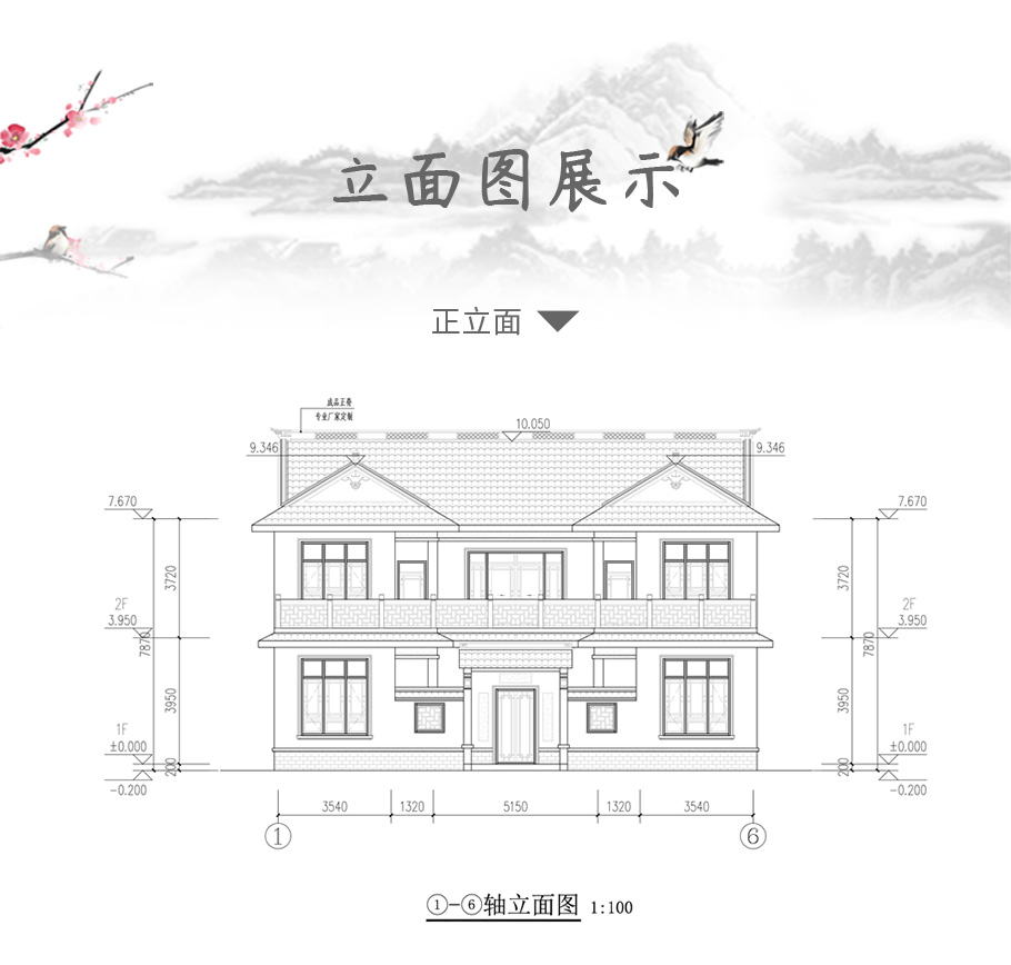 成品圖紙>2層中式框架結(jié)構(gòu)占地174平別墅設(shè)計圖紙