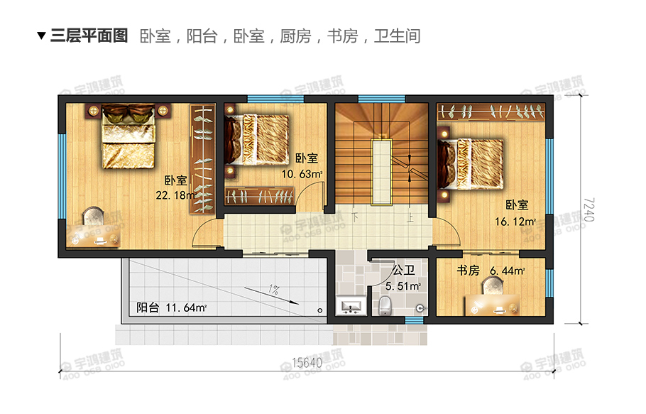 建筑平面圖:一層平面圖,二層平面圖,三層平面圖;