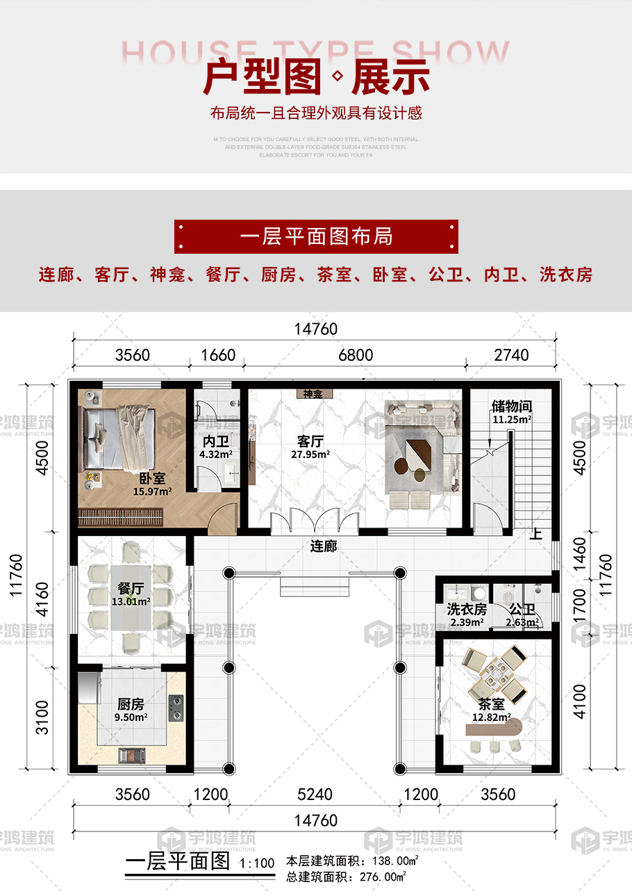 成品圖紙>中式風(fēng)格14x11磚混結(jié)構(gòu)別墅設(shè)計(jì)圖紙