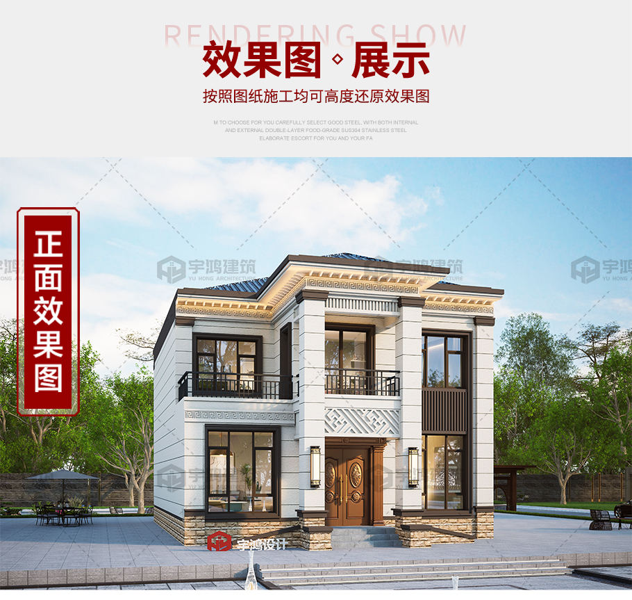 | 風格:新中式 | 層數:二層 | 結構形式:磚混結構 | 圖紙編號:YH-2-6700 |