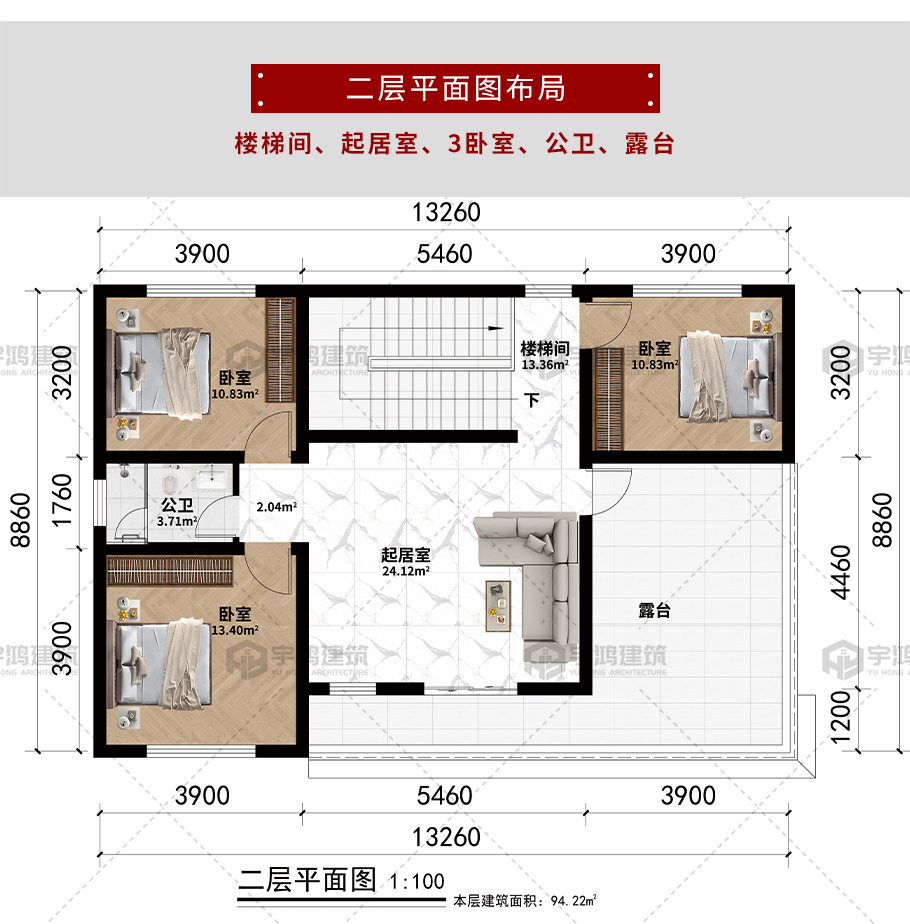 | 開間:13.26米 | 進深:8.86米 | 占地面積:122.85平方米 | 建筑面積:211.45平方米 |
