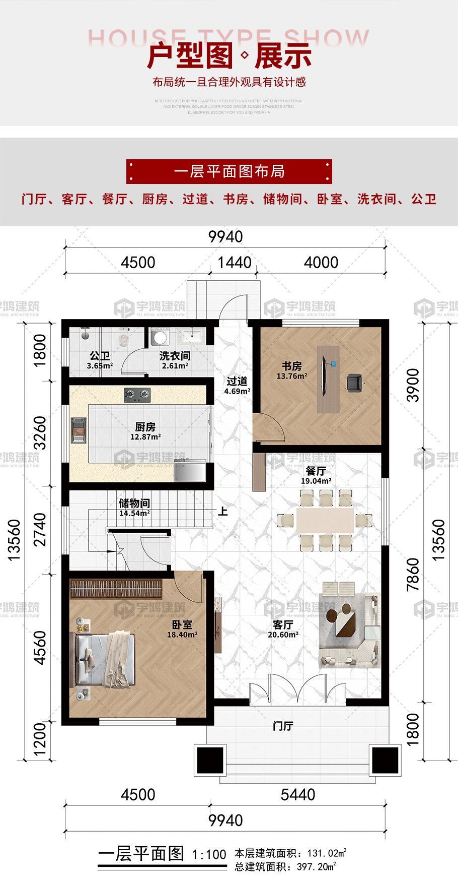 | 開間:13.56米 | 進深:9.94米 | 占地面積:138平方米 | 建筑面積:397.2平方米 |