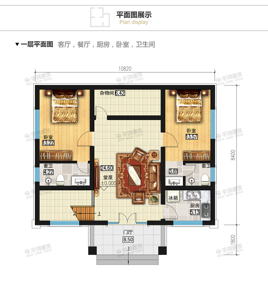 | 開間:10.82米 | 進深:10.2米 | 占地面積:90.9平方米 | 建筑面積:176.2平方米 |
