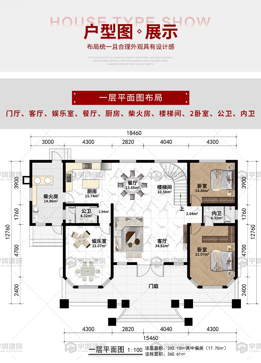 | 開(kāi)間:18.46米 | 進(jìn)深:12.76米 | 占地面積:221.8平方米 | 建筑面積:360.61平方米 |