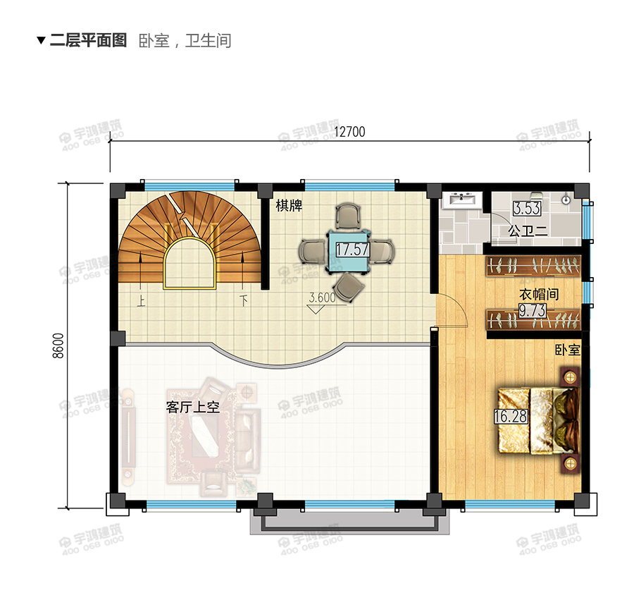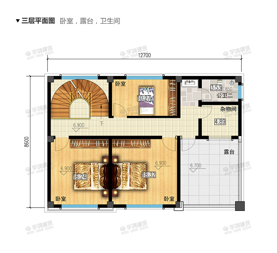 2019年新款110平米三層復式客廳農村別墅設計圖紙