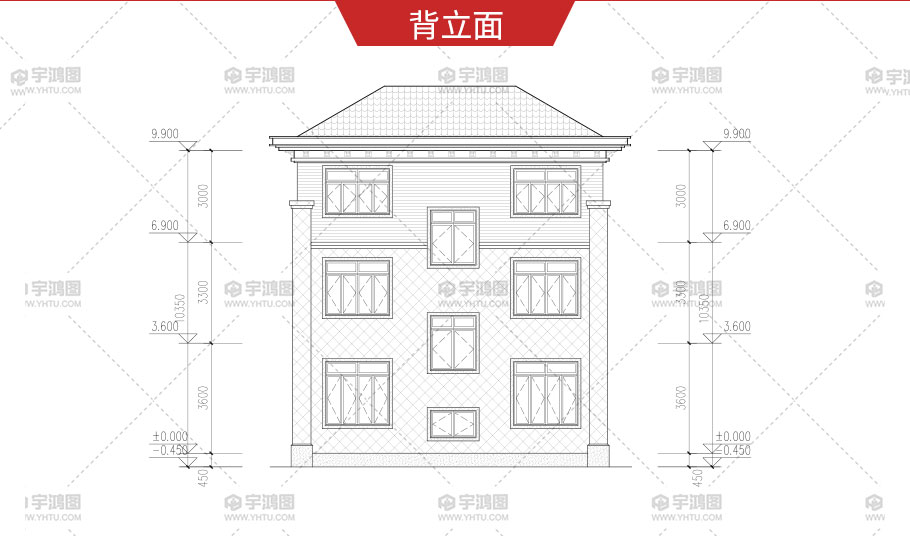 建筑立面圖:東立面圖,西立面圖,南立面圖,北立面圖,剖面圖;